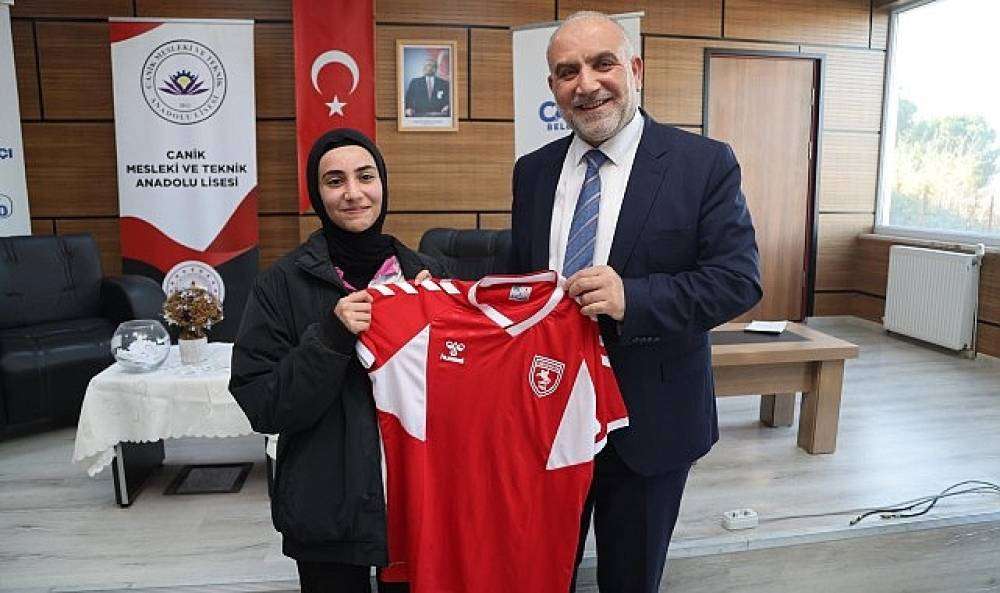 Canik Belediye Başkanı İbrahim Sandıkçı, ‘Başkan Okulumda’ projesi kapsamında öğrencilerle bir araya geldi.  Canik Belediye Başkanı İbrahim Sandıkçı, eğitime yönelik yeni projeleri hayata geçirmeye devam ettiklerini belirtti. 'Başkan Okulumda' projesi çerçevesinde Canik Mesleki ve Teknik Anadolu Lisesi öğrencileriyle bir araya gelen Başkan İbrahim Sandıkçı, öğrencilere yönelik yeni destek programlarını uygulamaya alacaklarının müjdesini verdi. Eğitime yönelik çalışmaları büyük bir titizlikle gerçekleştirmeye devam ettiklerini ifade eden Başkan İbrahim Sandıkçı, "Bilgi ve yetenekleriyle geleceğimize değer katan bir nesil için yorulmak bilmeden çalışmaya devam ediyoruz" dedi.   "Bilimde ve teknolojide öncü nesiller yetiştirmeye devam edeceğiz" Canik Mesleki ve Teknik Anadolu Lisesi öğrencileriyle buluşan Başkan İbrahim Sandıkçı öğrencilerin taleplerini ve önerilerini dinleyip, onlara eğitime yönelik yeni projeler hakkında bilgiler verdi. Öğrencilerin talep ve önerileri doğrultusunda eğitim çalışmalarına yön verdiklerini belirten Başkan İbrahim Sandıkçı öğrencilere hitaben gerçekleştirdiği konuşmasında, "Gençler sizler güçlü geleceğimizin teminatısınız. Bilginiz ve yeteneklerinizle her alanda bağımsız ve güçlü Türkiye'nin neferlerisiniz. Sizlerin kaliteli ve nitelikli bir şekilde eğitim alması bizlerin en büyük önceliğidir. Her daim öğrencilerimizin yanında olmaya devam edeceğiz. Eğitime yönelik projelerimiz ve yatırımlarımızla sahip olduğu değerlerle örnek, aldığı eğitimle bilimde ve teknolojide öncü nesiller yetiştirmeye devam edeceğiz" şeklinde konuştu.    Öğrencilere Samsunspor Forması  Öğretmenler ve öğrencilerle uzun süre sohbet ederek onların taleplerini dikkatle dinleyen Başkan İbrahim Sandıkçı, programın ardından öğrencilere hediye takdiminde bulundu. Coşkunun dinmediği programda Başkan İbrahim Sandıkçı öğrencilere Samsunspor forması, bluetooth kulaklık, akıllı saat, spor çantası ile akıl, zekâ ve strateji oyunları hediye etti.    Programa, Canik İlçe Milli Eğitim Müdürü Zahit Köseoğlu da katıldı. Kaynak: (BYZHA) Beyaz Haber Ajansı