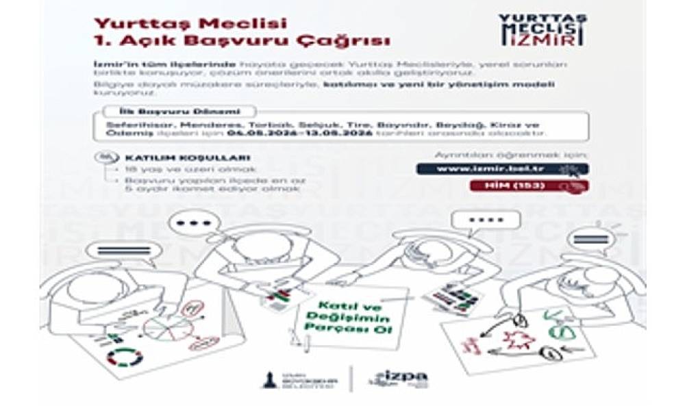 Seferihisar, Menderes, Torbalı, Selçuk, Tire, Bayındır, Beydağ, Kiraz ve Ödemiş’te yaşayan vatandaşlar Yurttaş Meclisi’nin bir parçası olmak için başvurularını 4-13 Mayıs 2026 tarihleri arasında yapabilecek. Başvuru için 18 yaşını doldurmuş olma ve ilgili ilçede en az beş aydır ikamet etme şartı aranacak. Katılımcılar demografik denge gözetilerek “Yurttaş Piyangosu” yöntemiyle belirlenecek.
