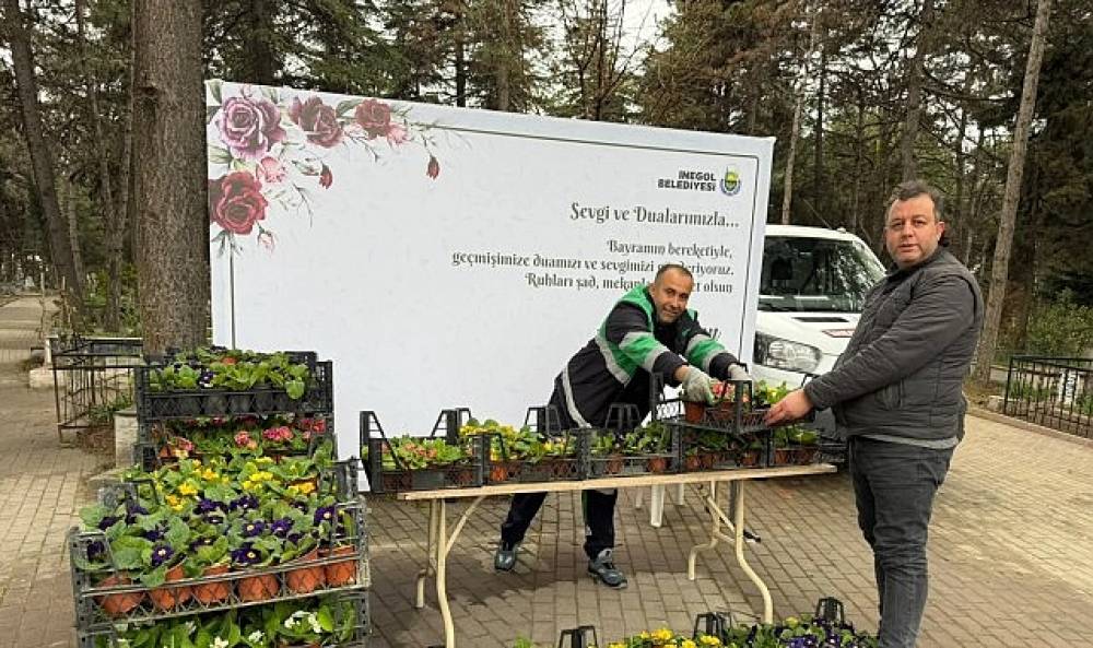 İnegöl Belediyesi Park Bahçeler Müdürlüğü ile Defin Hizmetleri Müdürlüğü’nün ortak çalışması kapsamında; İstanbullu Hasan, Kavaklaraltı, Hastane, Orhaniye, Mahmudiye 1 ve 2 ile Hamzabeyli Sadık Ağa Kent Mezarlığı’nda toplam 9 bin çiçek dağıtıldı. Mezarlıkları ziyaret eden vatandaşlar, aldıkları çiçekleri yakınlarının kabirlerine dikerek alanları adeta birer çiçek bahçesine dönüştürdü.
