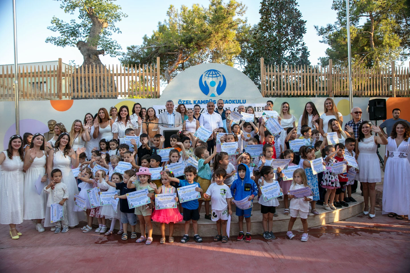 İZMİR (İGFA) - İzmir Güzelbahçe Belediyesi Onur Günay Eğitim Kampüsü Anaokulu, yaz kampı sonunda öğrencilerin hayal gücünü ve yaratıcılığını yansıtan eserlerden oluşan sergiyi büyük bir coşku ve katılımla gerçekleştirdi. Etkinliğe Güzelbahçe Belediye Başkanı Mustafa Günay, belediye meclis üyeleri, kampüs yöneticileri, öğretmenler, öğrenciler ve veliler katıldı.
