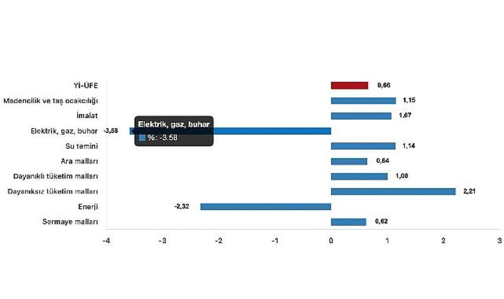 Ana sanayi gruplarının aylık değişimleri; ara mallarında %0,64 artış, dayanıklı tüketim mallarında %1,0 artış, dayanıksız tüketim mallarında %2,21 artış, enerjide %2,32 azalış ve sermaye mallarında %0,62 artış olarak gerçekleşti.