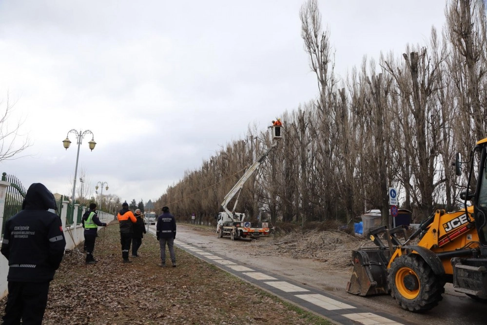 ESKİŞEHİR (İGFA) - Büyükşehir Belediyesi Park ve Bahçeler Dairesi Başkanlığı ekipleri tarafından başlayan çalışmaların yaklaşık iki hafta sürmesi bekleniyor. Parkın ana aksı üzerinde, yaya sirkülasyonunun yoğun olduğu bölgede bulunan ve ekolojik ömrünü tamamlayan kavak ağaçlarına yönelik gerçekleştirilen uygulamalarla hem güvenliğin artırılması hem de alanın doğal dengesinin korunması hedefleniyor.