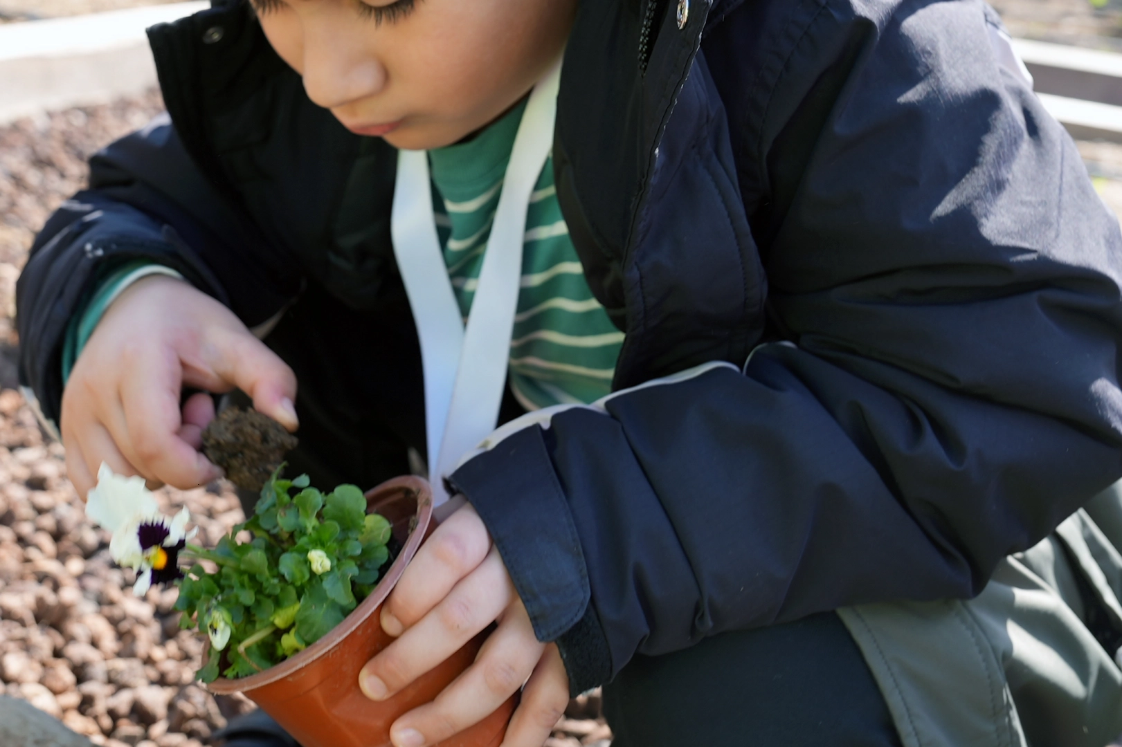 Etkinliğin sonunda ise çocuklara saksı dağıtıldı ve kürekle toprak doldurdukları saksılara çiçek dikmeleri istendi. Saksılara çiçekleri başarıyla diken öğrencilere çiçeklerle birlikte çeşitli hediyeler verildi