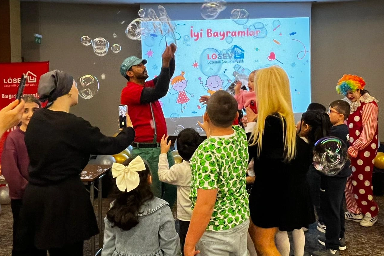 Çocuklar için Bubble Show gösterisi gerçekleştirildi. LÖSEV Ailesi bayramlaşan çocuklar ve yetişkin hastalar yaşadıkları zorlu mücadeleyi bir an olsun unutup, keyifli anlar geçirerek hep bir ağızdan “İyi Bayramlar” diledi.