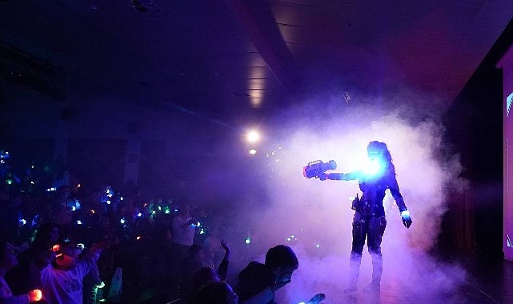 Daha sonra dünya çapında gişe rekorları kıran “Kozmik Birliğin Kahramanları” isimli interaktif eğitici uzay macerasının gösterimi yapıldı. Minik izleyiciler oyunda temel astronomi, atmosfer katmanları, güneş sistemiyle ilgili detaylı bilgiler öğrenirken, küresel ısınma, çöp ayrıştırma ve kendilerine verilen görevleri ekip halinde yerine getirdiler.